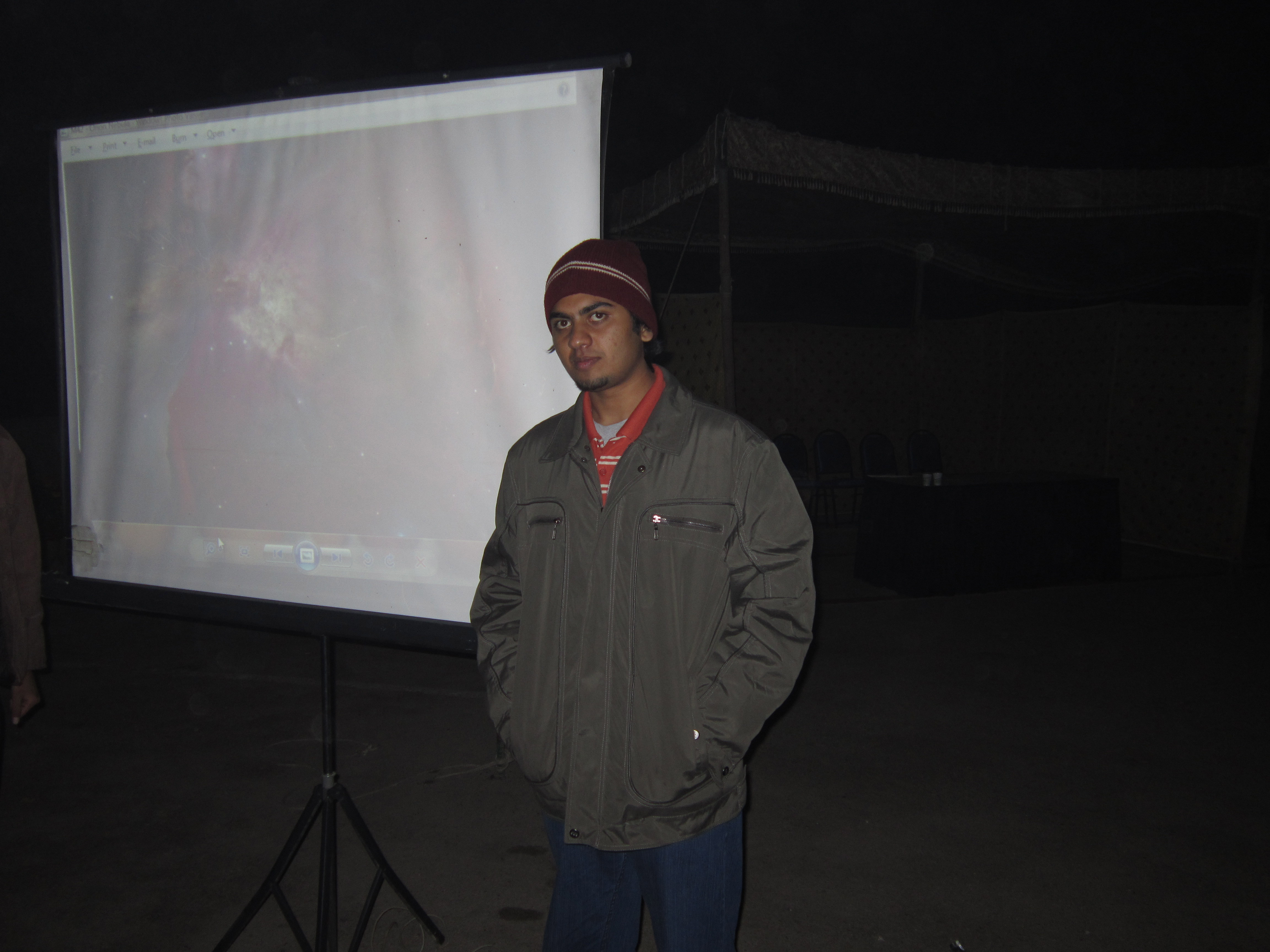 Meanwhile, Amjad Bhai and Zeeshan were busy with the audience. Zeeshan was locating the objects through the Stellarium. A boy argued with Amjad Bhai that the object visible from the telescope was not Jupiter, but just a photograph. Good question, isn’t it?