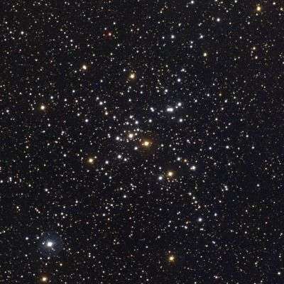M41 was discovered by Giovanni Batista Hordiena before 1654. It is now found to be moving away from us at a rate of 23.3 km/s. The diameter of the cluster is between 25 and 26 light years. Its age is estimated at between 190 and 240 million years old. M41 is also referred to as NGC 2287.