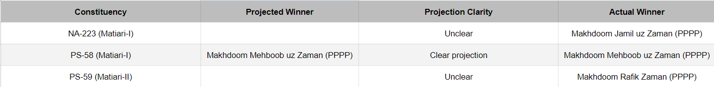 On the other hand, one Nazir Ahmed Shaikh of the Pakistan Muslim League-Functional (PML-F) got 38,300 votes here, but he is not competing here this time. Noteworthy is the fact that Naseer Memon is brother to the Director-General of Federal Investigation Agency (FIA), Bashir Memon, and just days ago, the PPPP’s central election cell, in a letter to the caretaker Prime Minister, has asked him for Memon’s transfer because he was allegedly involved in facilitating his brother, who is a candidate from PS-58 Matiari-I.